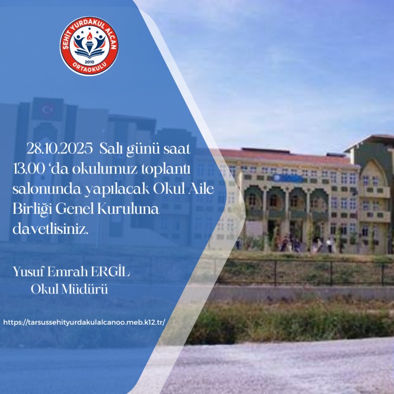 2025-2026 Eğitim Öğretim yılı Okul Aile Birliği Toplantısına...28 Ekim 2026 tarihinde saat 13.00 da gerçekleştireceğimiz Okul Aile...